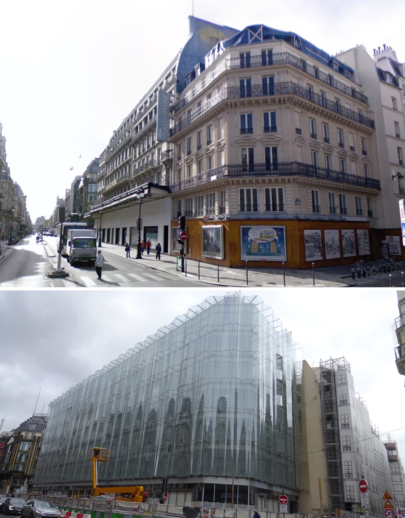 Mais la mère des batailles sur la transformation architecturale, finalement remportée par le groupe après des années, a concerné la Samaritaine. Racheté fin 2000 par LVMH, le grand magasin a rapidement été engagé dans un profond toilettage. Mais à partir de 2005, des associations de sauvegarde du patrimoine ont lancé la bataille, notamment contre la modification de la façade rue de Rivoli, classique bâtiment parisien devant être remplacé par une verrière ondulée transparente, aussitôt surnommée « le rideau de douche » par ses détracteurs.